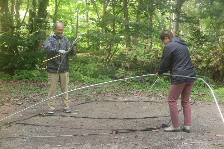 田島夫妻テントの片付け 仲良く共同作業ね |
