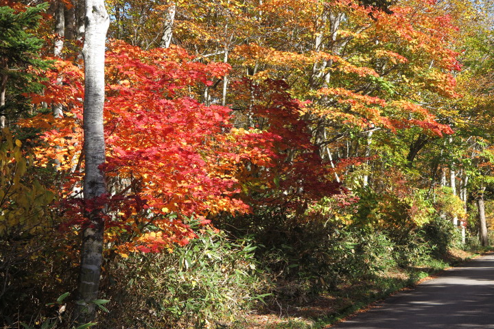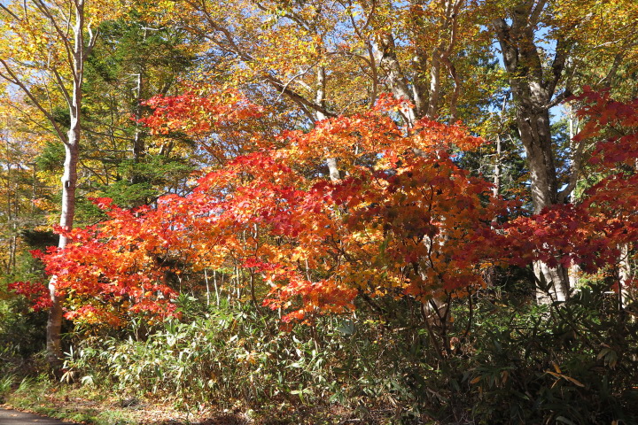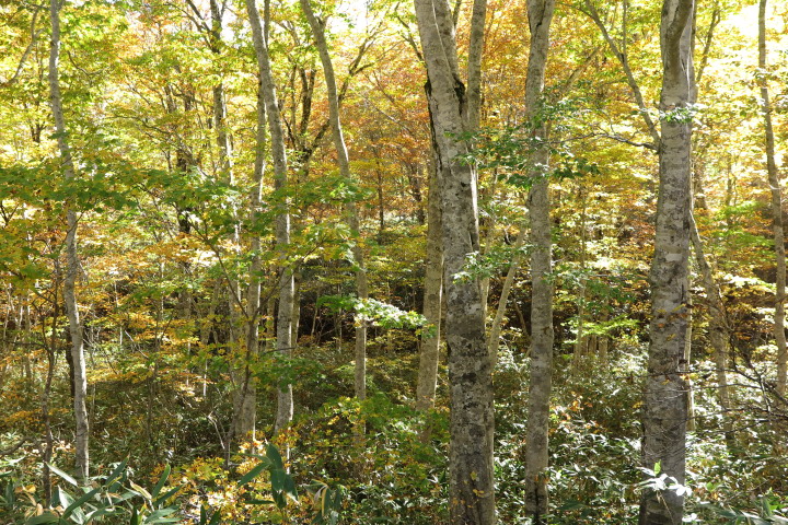 10月18日 ブナ坂の紅葉が少しづつ始まりました。冷え込みが厳しくなると一段と美しくなります